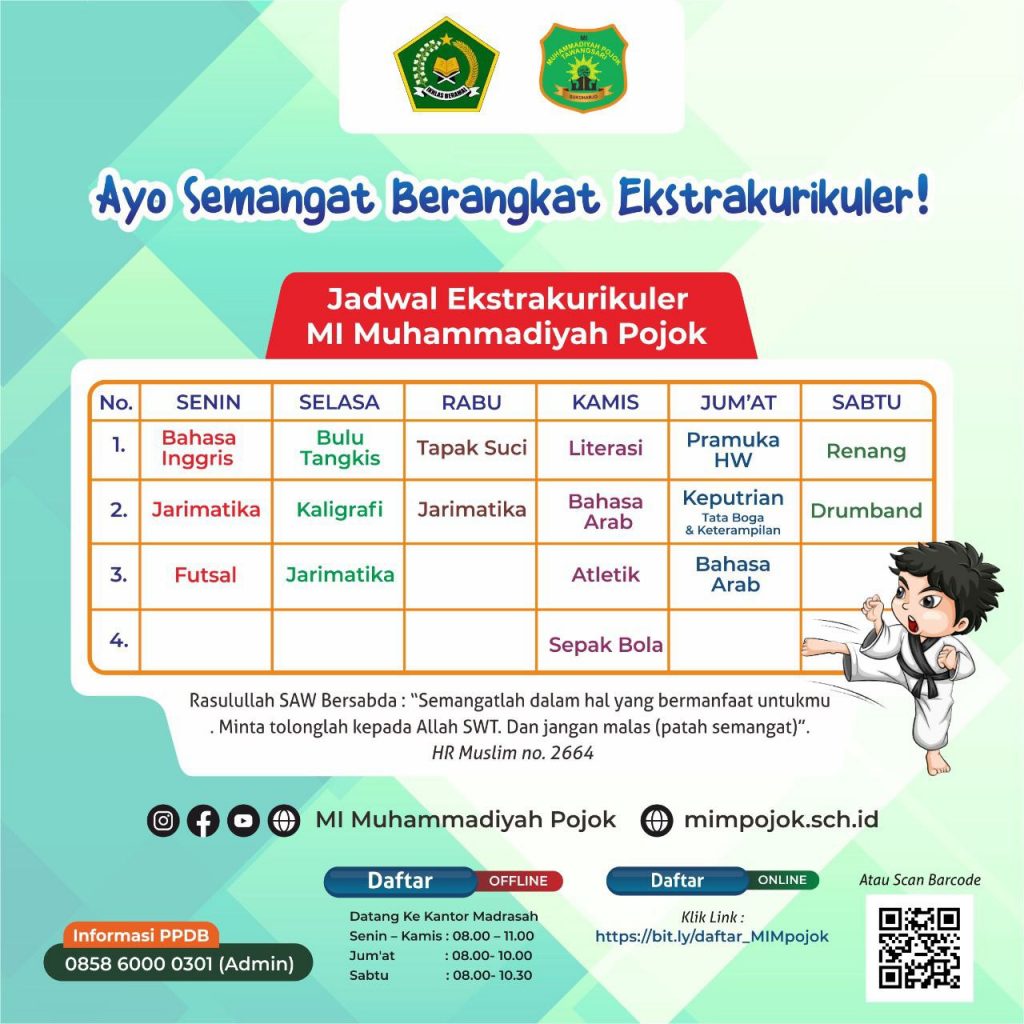 MI Muhammadiyah Pojok adalah lembaga pendidikan Islam tingkat dasar yang mengembangkan berbagai ketrampilan sesuai dengan potensi dan bakat masing-masing siswa ( multi intelegensi ).